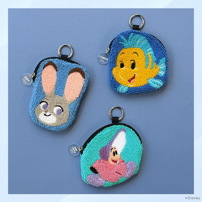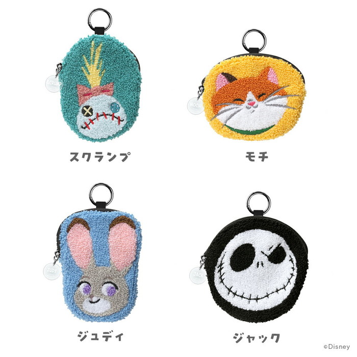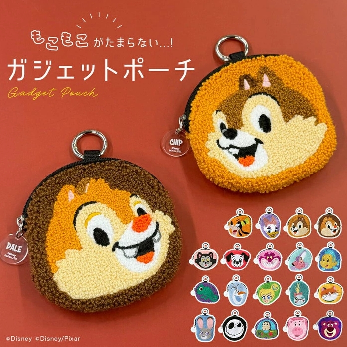 ガジェットポーチ / ディズニー ポーチ / サガラ刺繍 ポーチ / キャラクターポーチ / カラビナ付き ポーチ /